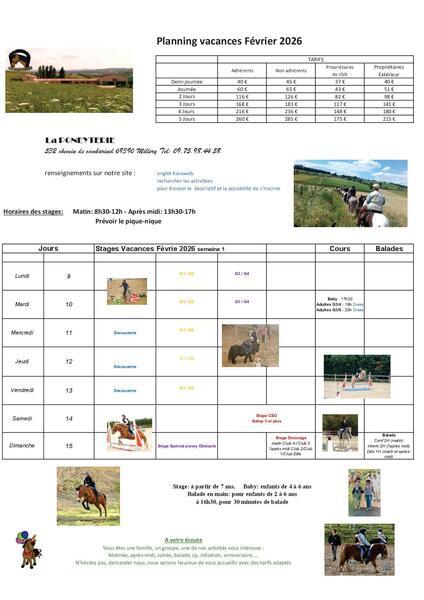 voici le planning des vacances de la Février 2026
